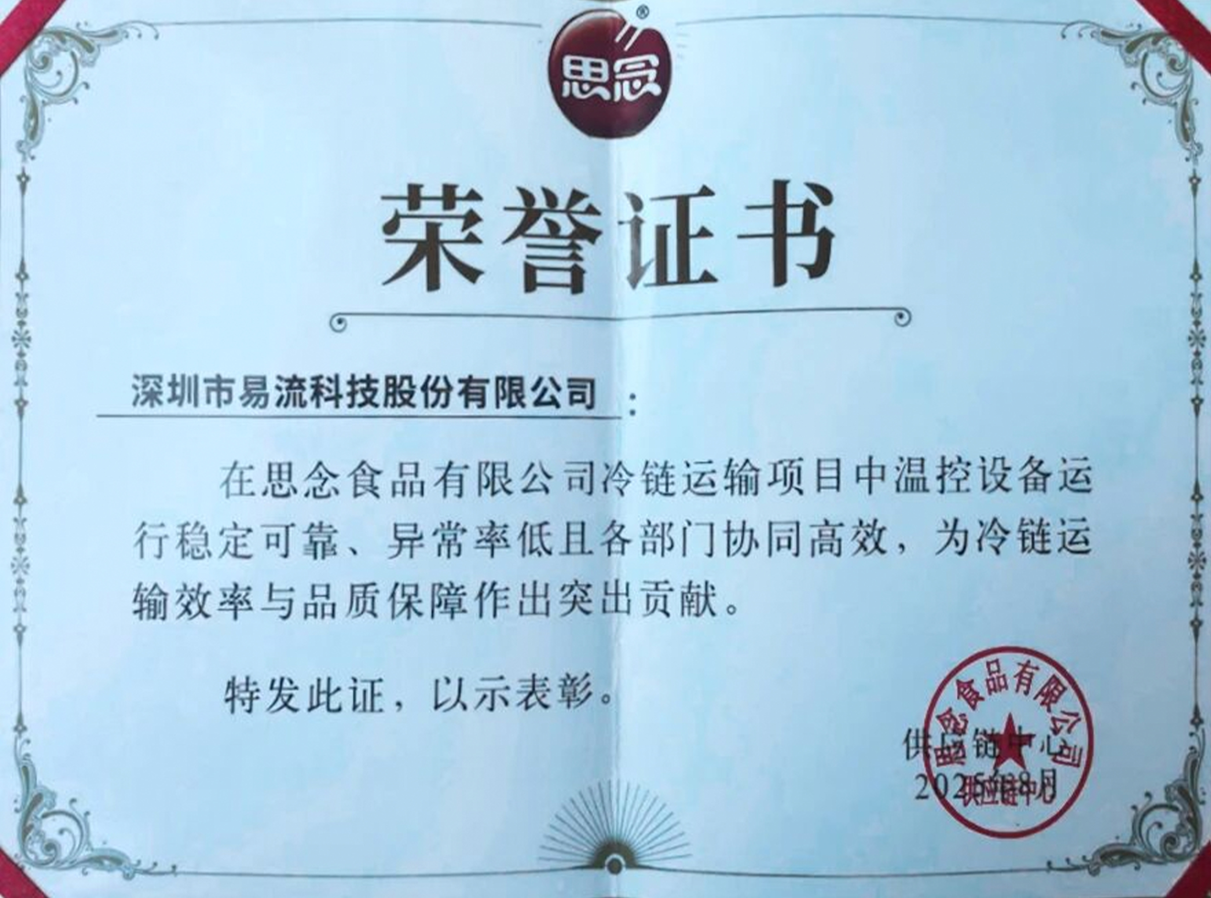 近日,G7易流凭借在思念冷链运输项目中的卓越表现,荣获思念集团颁发的荣誉证书。这一奖项,不仅是对G7易流技术实力与服务能力的认可,更是双方携手推动食品冷链数字化升级的最佳见证。