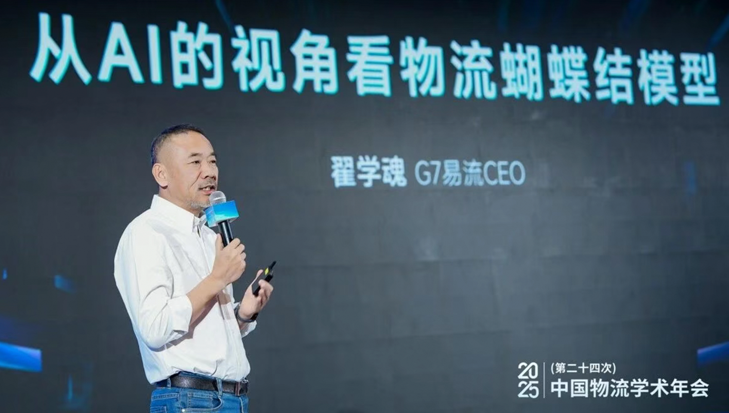 在2025年中国物流学术年会现场,G7易流创始人、CEO翟学魂以“从AI视角看物流蝴蝶结模型”为主题发表演讲,首次系统拆解物流AI产品的核心方法论——物流运营蝴蝶结模型,为行业AI落地提供了清晰的实践框架。